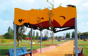 murales y mobiliario urbano están artísticamente tematizados en recuerdo