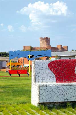 Son sorprendentes y acelerados, sobre todo en esta última etapa, los cambios que estas dos actuaciones (la modificación y la intervención) han protagonizado a través de los siglos, lo cual no es sólo debido a una sustitución y aportación de nuevos elementos en el orden estético y plástico, sino también a un cambio de estructuras en el pensamiento, que se ha visto forzado por la evolución de la práctica y la necesidad de diferentes usos, dados por las costumbres de una sociedad que crece y se transforma constantemente. La arquitectura y el urbanismo en general, en su evolución a través del tiempo, tributarios de los encargos, se expresan en un nuevo lenguaje una vez superadas estas tendencias. Es este lenguaje del siglo XX un medio de expresión que ha permitido su desarrollo con extraordinaria rapidez, lo cual lamentablemente no ha sido una buena contribución a favor de una arquitectura y un urbanismo excelente, apoyados y complementados por el avance técnico de nuestros días, sino a favor de una proyección de ciudades masificadas y simples, no en el buen sentido de la palabra, donde muy pocos destacan por su personalidad y racionalidad cuando se trata de componer y dar vida a un espacio. De esta forma podemos apreciar hoy en nuestras localidades despersonalizadas las distintas etapas de una transformación que se agrava por días, con un gran deterioro urbano, un alto índice de contaminación y otros muchos factores que convierten cada vez en menos natural, humana y sana la vida de nuestras ciudades. Corregir o impedir que este proceso avance no implica una desorbitada inversión económica, una escandalosa subida de precios y convertir en inaccesible el hecho de cada ciudadano ocupe su parcela dentro de la ciudad, sino un cambio, muy grande al principio, en la mentalidad y la responsabilidad de quien depende la calidad y la naturalidad de la vida de miles de habitantes. Se necesita un nuevo concepto urbanístico y esta necesidad, en el punto donde hoy nos encontramos utilizando la tecnología de la que podemos disponer, sólo puede ser resuelta desde un punto de vista artístico. Esta tarea, no es sólo labor de Ayuntamientos, Estados y Gobiernos..., sino también de ideas y proyectos que puedan ser apoyados con lógica y con éxito por estos estamentos. Hay algunas "mentes" concienciadas a nivel individual y comprometidas con estos problemas de urgente solución. Así, junto al conjunto de actuaciones de ecologistas, científicos, investigadores, arquitectos, paisajistas, etc. Cristóbal Gabarrón aporta su contribución artística, ofreciendo su investigación y sus ideas con el fin de encontrar una ejemplar perspectiva de urbanismo y arquitectura que aporten tanto humanismo y belleza como calidad de vida. Su propósito es que el arte sea el complemento perfecto para este cambio espectacular, que casi irremediablemente, él espera que ha de suceder algún día. Es éste, el que Gabarrón nos ofrece, un proyecto donde se asegura la recuperación de las ciudades, la indiscutible convivencia de la ciencia y de la naturaleza ante una urgente restauración del medio ambiente. Se expone aquí la idea de una ciudad nueva con núcleos en su interior que llegan a ser la referencia de una zona, tal y como funcionaban filosóficamente en siglos pasados. Propuestas de intervención y modificación urbanaElementos estéticos en el paisaje y el urbanismo